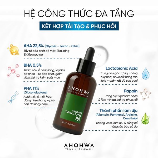 Nhằm đáp ứng tốt hơn nhu cầu sử dụng chuyên sâu tại các phòng khám da liễu, spa và cơ sở làm đẹp chuyên nghiệp, Ahohwa chính thức nâng cấp dung tích sản phẩm Triangle Peel PA từ 30ml lên 50ml.