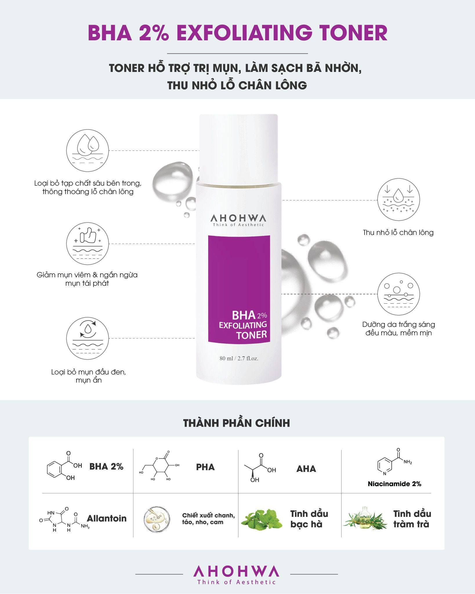 BHA 2% Exfoliating Toner – Hỗ Trợ Kiểm Soát Dầu, Làm Sạch Da, Cải Thiện Lỗ Chân Lông – 80ml