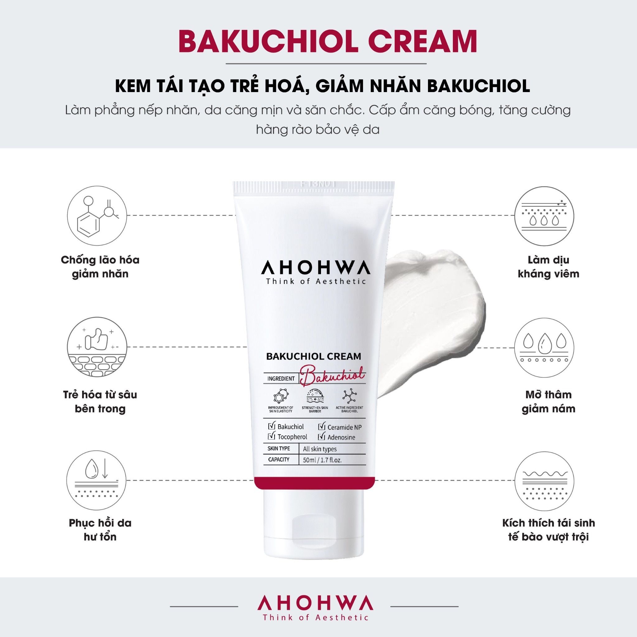 Bakuchiol Cream - Kem Hỗ Trợ Phục Hồi, Làm Mịn Da, Giảm Nếp Nhăn Bakuchiol - 50ml